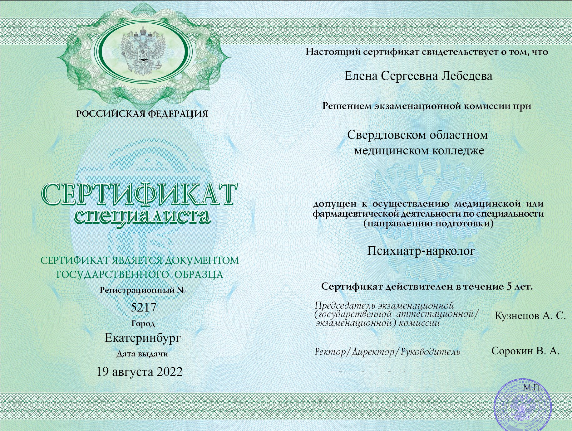 Елена Сергеевна Лебедева врач нарколог клиники доктора Стукаловой в Туймазах